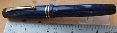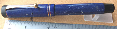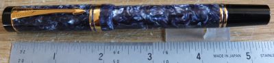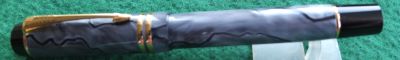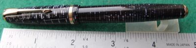 par896: A Parker Premier in blue and black marbled finish from 1932 or thereabouts in good mechanical condition with a nice fine grade 14ct gold nib and a single cap band £95.00 SOLD |