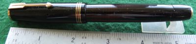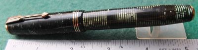 par1296: A very nice condition Over-size vacumatic fountain pen in black from 1934 with a very nice single-colour broad grade 14ct gold nib; this is a very desireable pen and hard to find especially in this condition. £355.00 SOLD |