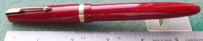 par914: A Parker Challenger in red and black from 1937 or thereabouts in good mechanical condition with a nice medium grade 14ct gold nib and three cap bands £115.00 SOLD |