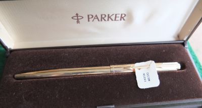 par784: A hardly-used immaculate-condition Parker 61 18ct gold hall-marked fountain pen in fine barley pattern with 18ct gold hall-marked clip; there are no dings but there are the initials 'BE' on the cartouche; beautiful none-the-less! £795.00 SOLD |