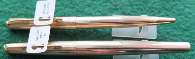 par1279: A mint unused gold-plated Falcon fountain pen and ballpen set in superb condition and in its original box; this set has not been used at all; the pen has a medium grade nib that will be nice to write with; from around 1980 £155.00 |