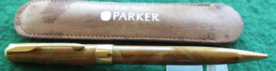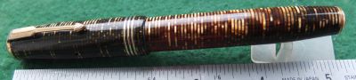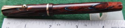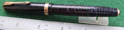 par1333: A Parker Moderne in browns and blue from 1940 or thereabouts in good mechanical condition with a nice extra-fine grade 14ct gold nib and one cap band £115.00 |