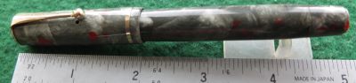 par1297: A Canadian Premiere fountain pen in red and grey marbled finish from the 1940s in very nice condition; the pen has a lovely Canadian fine grade 14ct gold nib. £115.00 |
