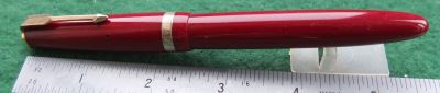 par1315: A beautiful condition Debutante-size vacumatic fountain pen in burgundy pearl from 1940 with a very nice two-colour fine grade slightly-flexible 14ct gold nib £105.00 SOLD |