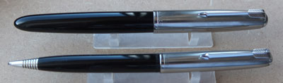 par1272: A very nice condition used Parker 51 ballpoint pen and pencil set in black with lustaloy caps; boxed too £80.00 |