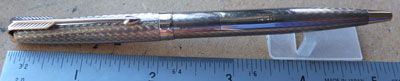 par1172: A very nice, but worn, and quite rare 2½ Jack-Knife chased fountain pen with nickel-plated trim; this is pre Duofold £125.00 |