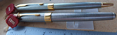 par674: A very nice 75 Ciselle fountain pen in 14ct gold-filled finish with gold-plated clip and tassies; the pen has been used but not a lot; pen has a medium grade 14ct gold nib, marked M, and uses cartridges or a converter and a converter is fitted; USA made. £85.00 SOLD |