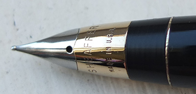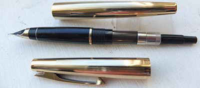 This pen is in lovely condition; it has not been used much and it dates from around 1970; it has no dings, cracks or splits and no scratches either; the clip is secure. The nib is a medium grade and the pen is a cartridge or converter-filler and has a converter fitted; a delightful pen for everyday use or would not look out of place in a nice collection; a nice pen to handle too. Please note the light has played havoc with my pictures today so ignore the colour differences shown on the cap in the third picture. The pen comes in a calf leather sleeve.