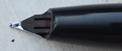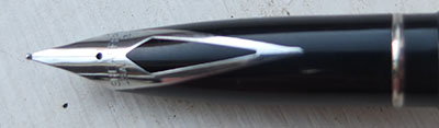 This is a very nice fountain pen that has been used but not been used much; the surfaces are very good and there are no cracks, splits or dings; the clip is secure. The nib is a medium grade steel and marked USA; the pen will take cartridges or a converter which is in fact fitted.