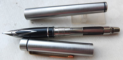 > Sheaffer Targa Fountain Pen in Brushed Steel Finish