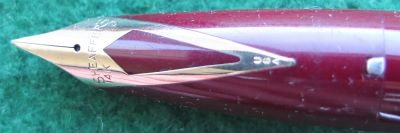 A Sheaffer PFM (PFM meaning Pen for Men) is a little larger than the average pen but still not too large for a ladies hand and I know a few ladies that use one as an everyday pen; it uses the unusual snorkel filling system which is generally found to be quite a talking point; these pens were made in 1959 in five colours viz. black, burgundy, blue, green, and grey and in five models viz. PFM I, PFM II, PFM III, PFM IV, and PFM V; this pen is the burgundy one with the gold electroplated cap.