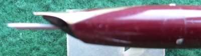 This is another burgundy PFM V pen in perfect mechanical condition but has been used so there are fine surface scratches visible under a glass however, it is in nice condition; this cap and barrel are both good with no plating wear to the cap or clip but just a couple of small bruises to the cap top; the clip is secure. The nib is a lovely fine grade 14k gold and writes nicely. Please note the spots on the second picture are dust attracted after the polishing process.