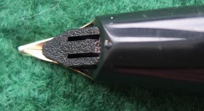 This is an almost mint but inked Targa fountain pen that has been inked but not used; the surfaces are very good and there are no cracks, splits or dings; the clip is secure. The nib is a medium grade 14ct gold and marked USA; the pen will take cartridges or a converter which is in fact fitted.
