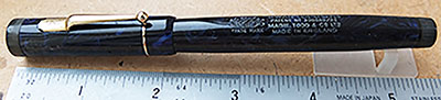 swan155: A mechanically sound and perfectly functional Swan L205/52 leverless fountain pen in blue and black marble with gold-plated trim and a No.2 medium grade 14ct gold nib; it writes nicely and is only a little flexible £215.00 SOLD |