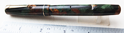 swan162: A mechanically sound and perfectly functional Swan SM205/63 lever-fill fountain pen in bronze, green and black marble with gold-plated trim and a No.2 medium grade 14ct gold nib; it writes nicely and quite flexible £135.00 SOLD |