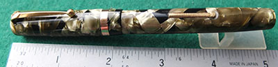 swan158: A mechanically sound and perfectly functional Swan L205/47 leverless fountain pen in bronze, white and black marble with gold-plated trim and a No.2 fine grade 14ct gold nib; it writes nicely and is fairly flexible £185.00 |