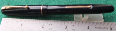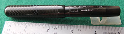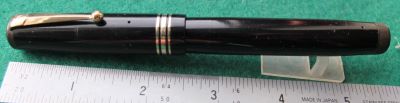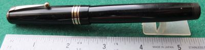 swan164: A mechanically sound and perfectly functional Swan eyedropper fountain pen in black with an 18ct gold band and a broad grade 14ct gold under and over-fed nib; it writes nicely and quite flexible £75.00 SOLD |
