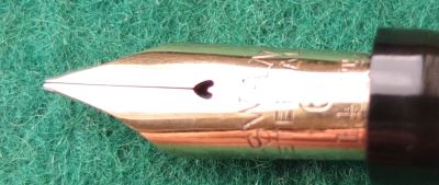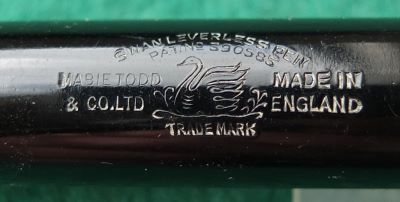 Here is a classy-looking Swan 1060 leverless in very nice condition, albeit a little worn through use, with a 14ct gold fine grade No.6 Eternal nib; the pen is in very good condition but there are signs of use in the form of a little wear where the cap fits and where it has been posted; there are no cracks, splits or serious scratches and only slight signs of plating wear on the clip and the bands; the nib, by my classification, is a nice writer but not flexible; this pen would make a good daily-use pen or could be added to a collection and not look out of place.