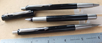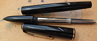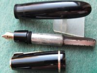bel300: A lightly used Parker 17 fountain pen in black with gold-filled trim and a medium grade nib; it is a piston-filler and needs ink from a bottle. £22.00 SOLD |