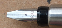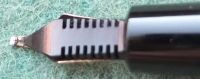bel340: A lightly used Parker 17 fountain pen in red with gold-filled trim and a broad oblique grade 14ct gold nib; it is a squeezy-fill and needs ink from a bottle. £22.00 SOLD |