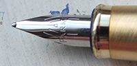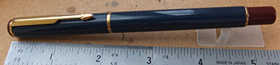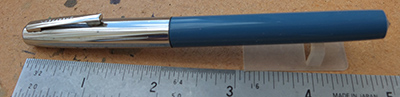 bel326: A lightly used Parker 45 fountain pen in blue with a fine grade nib; this pen still has a 'F' chalk mark on the barrel which shows it hasn't been used much; it uses cartridges or a converter and there is a converter fitted; both are readily available on the High Street. £15.00 SOLD |