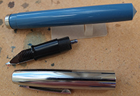 bel316: A lightly used Sheaffer fountain pen in blue with a bright steel cap; it has a medium grade steel nib and writes nicely; it uses cartridges or a converter and both are readily available on the High Street. £10.00 SOLD