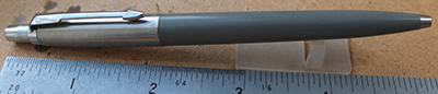 bel317: A lightly used Parker Jotter ballpoint pen in grey with a brushed steel cap; it uses refills that are readily available on the High Street. £10.00 |