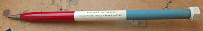 bel324: A used three-colour pencil in red, white and blue with appropriate colour leads; there is a crack in the white segment but it doesn't detract from its usefulness; there are spare leads in the blue end. £5.00 |
