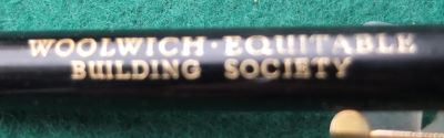 bel332: A lightly used propelling pencil in black with a Woolwich Equitable Building Society monogram on the side; it uhas lead and spare leads in the magazine. £15.00 |