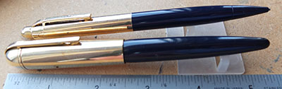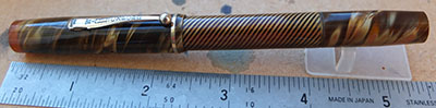 wahl010: A very nice Wahl Oxford fountain pen in browns and golds finish from 1936 or thereabouts; this pen has an unusual bulb filling system and this makes it quite rare; the pen has a Wahl Oxford No.3 medium grade 10ct gold nib; it writes nicely £245.00 |
