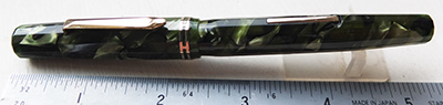 wahl038: A very nice Wahl Eversharp Skyline in dark green from 1929 or thereabouts; the pen has an Eversharp fine grade 14ct gold nib and writes nicely; this is an unusual one as it has a gold-plated crown. £125.00 SOLD |