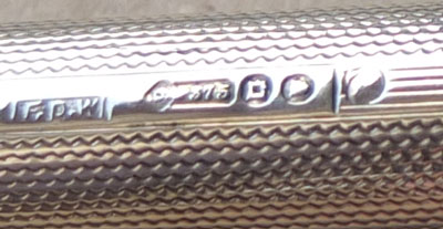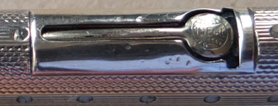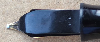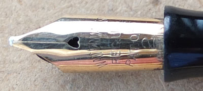 They don't get much nicer than this 9ct-gold line and dot overlaid 552½ and they certainly don't come along too often; this one is in good mechanical condition; there is a little light bruising on the cap top but its hardly noticeable; there is just a little plating wear on the lever but very little sign of oxidisation to the hard rubber bits; the imprint on the overlay on both the cap and the barrel are clear to see. The nib is a broad-oblique grade 14ct gold No.2 and writes nicely with a bit of flexibility; there is no name or initials on the cartouche. The pen is an lever-filler so just needs filling with ink, if you should care to use it, and off you go..