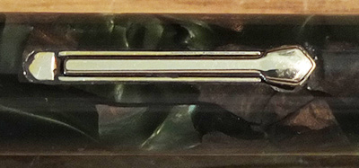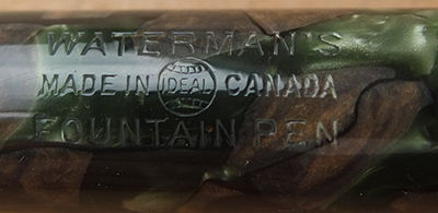 Here is a very nice and quite rare Canadian Waterman's Patrician in moss agate finish with a rare clipless cap; the lever and leverbox are both good as is the globe on the end of the barrel; it was made around 1930 and has had little use; this is a pretty pen with gold-plated trim and an enormous 14ct gold Canadian Patrician extra-fine grade nib; it looks lovely and will perform really well; the imprint is very readable and the plating is good. You will be thrilled with this one as the price is so reasonable for such a rare pen.