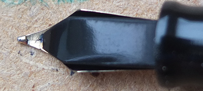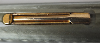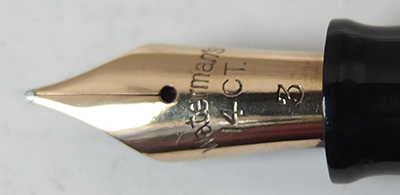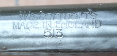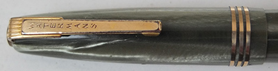 Here we have a very nice 513 in Light and dark grey with a good imprint on the barrel; the plating is good on the lever, the bands, and the clip; there are no cracks or splits but there are a couple of small scratches; the pen has a medium grade 14ct gold No.3 nib; the clip is secure.