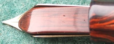 Here we have a very nice No.7 fountain pen in red ripple with gold plated trim; the pen has a purple coloured nib and cap band although the band is faded; the imprint on the barrel is very thin and there is just a little sign of marking where the cap fits but not where it is posted; the plating on the lever is a little worn as it is on the cap band but the clip is good; there are no cracks, splits or noticeable scratches; the clip is secure and the number 7 on the end of the barrel is clearly readable.