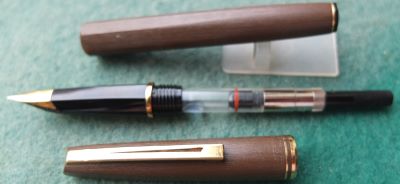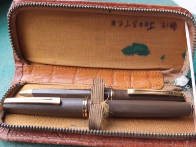 Here is a lightly-used Waterman fountain pen in matt brown finish with gold-plated trim; it was made around 2019/2020 and has been used but not a lot; it writes nicely; the pen has an extra-fine grade 18ct gold nib and is a cartridge or converter-filler and has a new converter fitted; cartridges and converters are readily available from High Street stationery shops. Please be aware that there is an engraving on the barrel. PS. I have included the ballpen but the mechanism doesn't work satisfactorily.