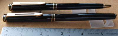 wart165: An Exclusive set from around 1989 in black with gold-plated trim; comprises fountain pen and ballpen; they have been used but still in lovely condition and boxed too; the pen has a fine grade 18ct gold nib. £115.00 |