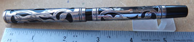 wart178: A very nice 412 Sterling Silver filigree over black hard rubber eyedropper in lovely condition; this is the clipless type with a medium grade 14ct gold No.2 nib; writes beautifully too with some flexibility. £375.00 SOLD |