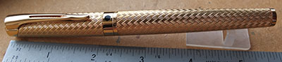 wart224: Here is a very nice 15SF fountain pen in black with an 18kt gold-filled filgree overlay; the pen is a sleeve-filler and has a very nice very-flexible fine grade 14ct gold No.5 nib; the nib has quite nice flexibility so writes rather nicely; they don't come much better than this. £875.00 |