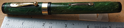 wart225: A very-nice very-rare mechanically sound jade Transition Patrician with a beautiful slightly-flexible fine grade 14ct gold No. 5 nib; this pen differs from the standard Patrician in as much as it has a riveted clip, globe lever, non-standard rounded ends, and a cap band that could be solid gold. £1250.00 |