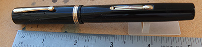 wart236: A very nice Waterman's No.5 in black with gold-plated trim, made around 1935; it has a lovely broad grade 14ct gold No.5 nib that writes nicely with just a little flexibility. £75.00 SOLD |