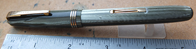 wart249: A very nice Waterman's 513 in light and dark green pearl finish with gold-plated trim, made around 1945; it has a lovely medium grade 14ct gold No.3 nib that writes nicely. £65.00 SOLD |