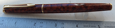 wart192: An Exclusive fountain pen from around 1989 in brown and black marble with gold-plated trim; the pen has been used but still is in lovely condition with a medium grade 18ct gold nib. £85.00 |