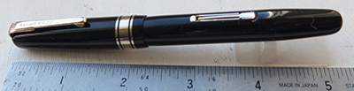 wart123: A very nice 552½ 9ct-gold line and dot over black hard rubber lever-filler in lovely condition; this is the clipless type with a broad-oblique softish No.2 nib; writes beautifully too. £425.00 SOLD |