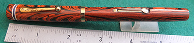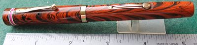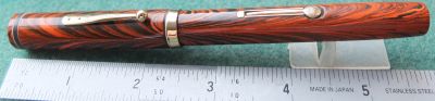 wart264: A beautiful-condition 52½V in orange and black woodgrain finish with gold plated trim; this pen has a medium grade 14ct gold Manifold nib which writes nicely. £ TO FOLLOW >> More |