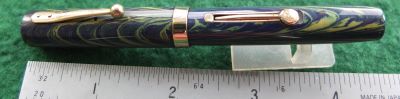 wart280: A nice-condition 52v in blue and yellow ripple finish with gold plated trim; this pen has a fine grade 14ct gold nib which writes nicely but with a little flex. £265.00 SOLD |