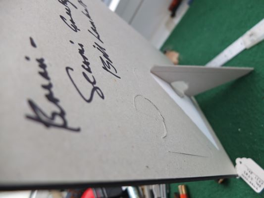 wart286: This is a piece of advertising made of card and is capable of standing up unsupported; it does say " Brian-Seasons Greetings! Bill Lambert" on the back. |