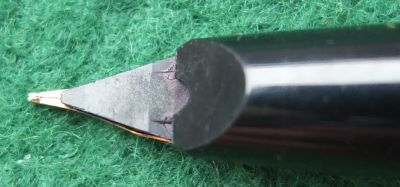 This pen has been used but not a lot; there are few marks and shows only small signs of having been used; there are no names or initials on it. It writes very nicely.