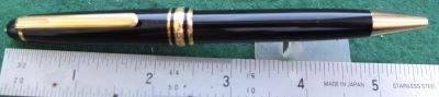 oeu294: A carefully used Mont Blanc ballpoint pen in black with gold-plated trim; this pen is in lovely condition but doesn't come with its box. It is genuine as are all the other MB pens on my site. £90.00 SOLD