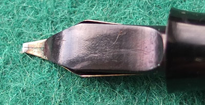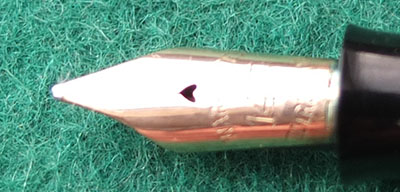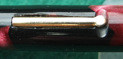 Here we have a mechanically-sound lightly-worn condition fountain pen, made around 1950, in red and black marbled finish; the pen has a few tiny marks but generally its very good; the pen is a lever-filler and has a broad grade 14ct gold nib which writes nicely. This is a beautiful little pen with little or no plating wear and a good imprint; there are no cracks, chips or serious scratches.